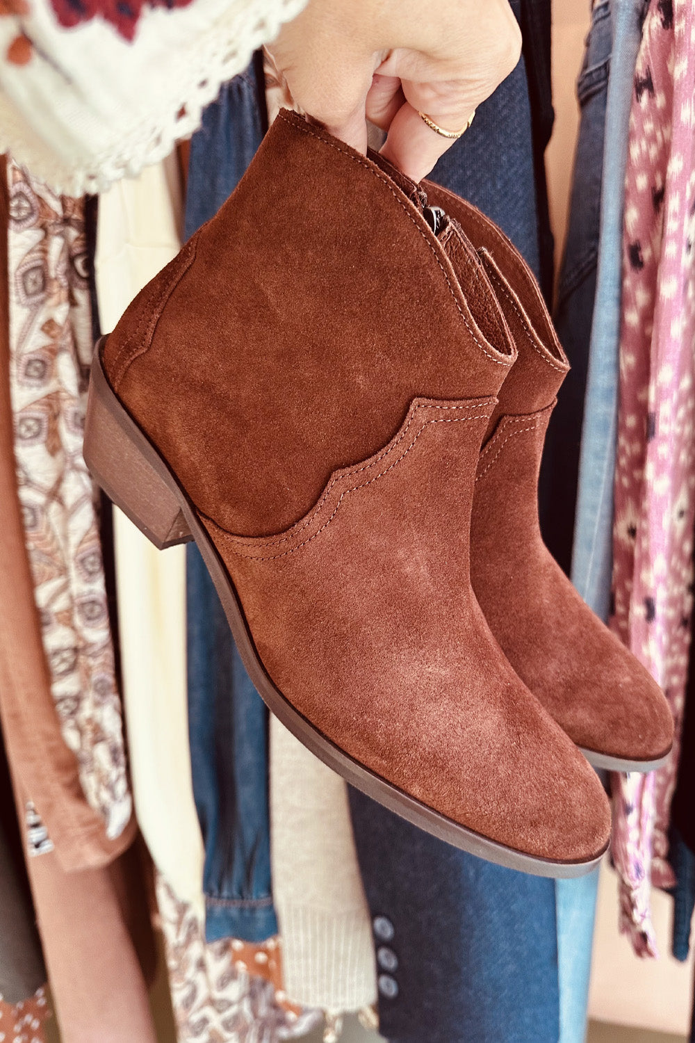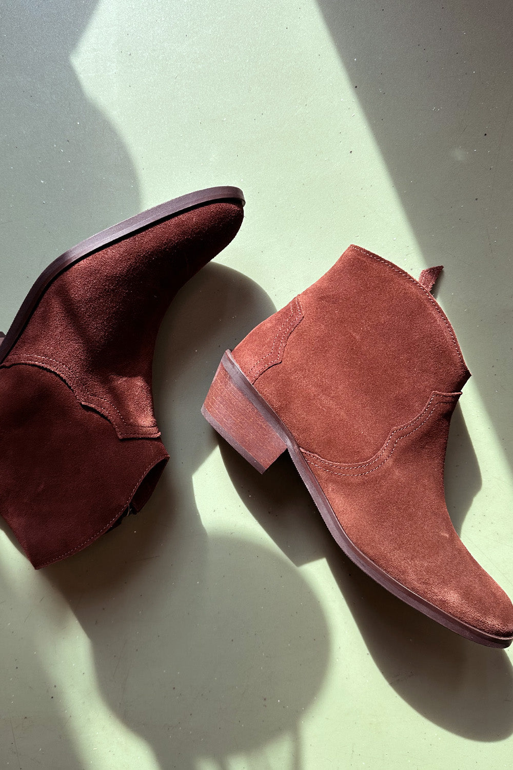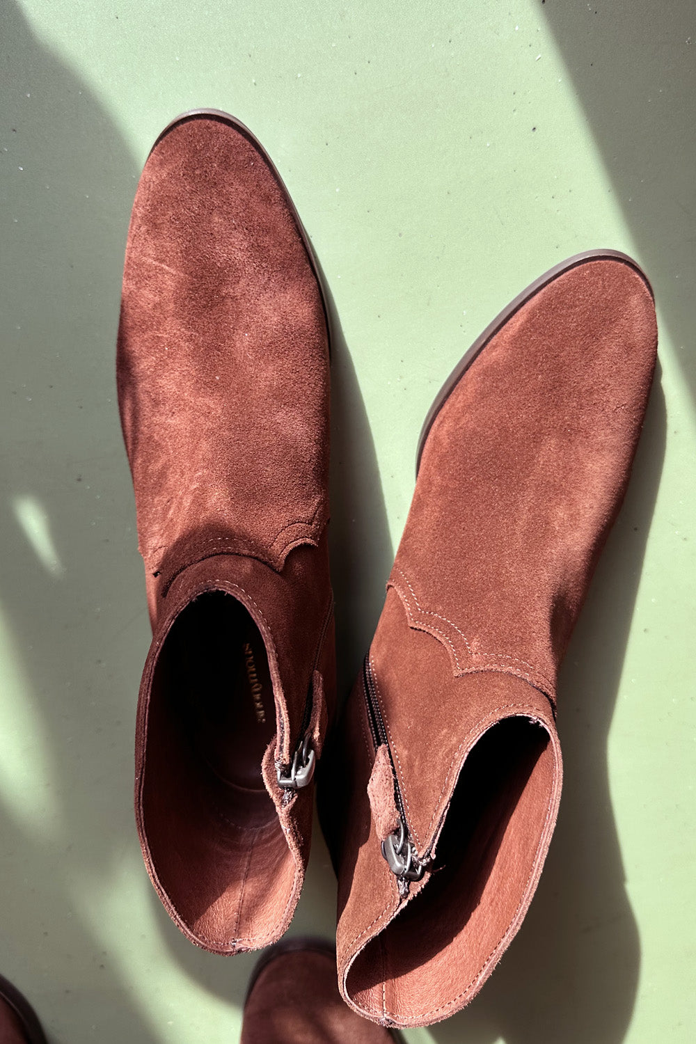 - Stivaletti A.Copenhagen in pelle scamosciata color cioccolato. Modello camperos, punta stondata, chiusura laterale con zip. Suola e tacco con fondo in gomma. Interno in nappa leggermente imbottita sul tallone. Interamente realizzate in Portogallo con pellami pregiati.