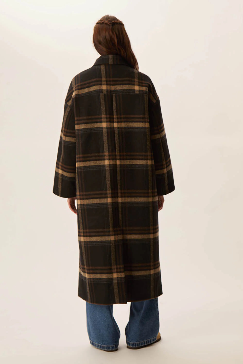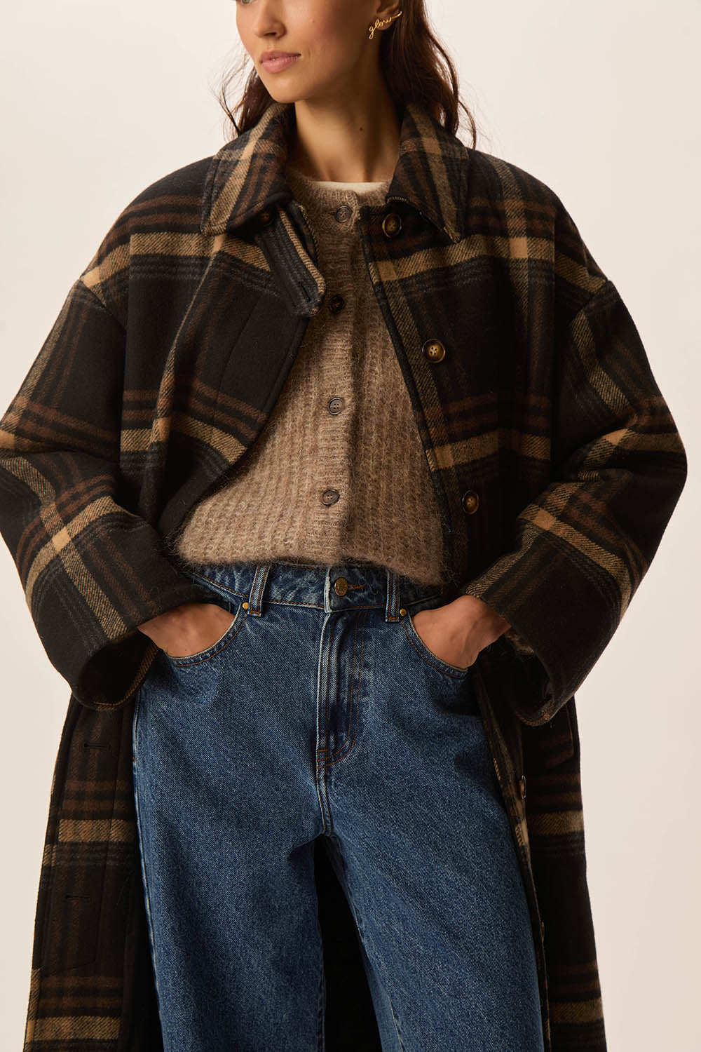 Cappotto Des Petits Hauts maxi check nero cammello e caffè