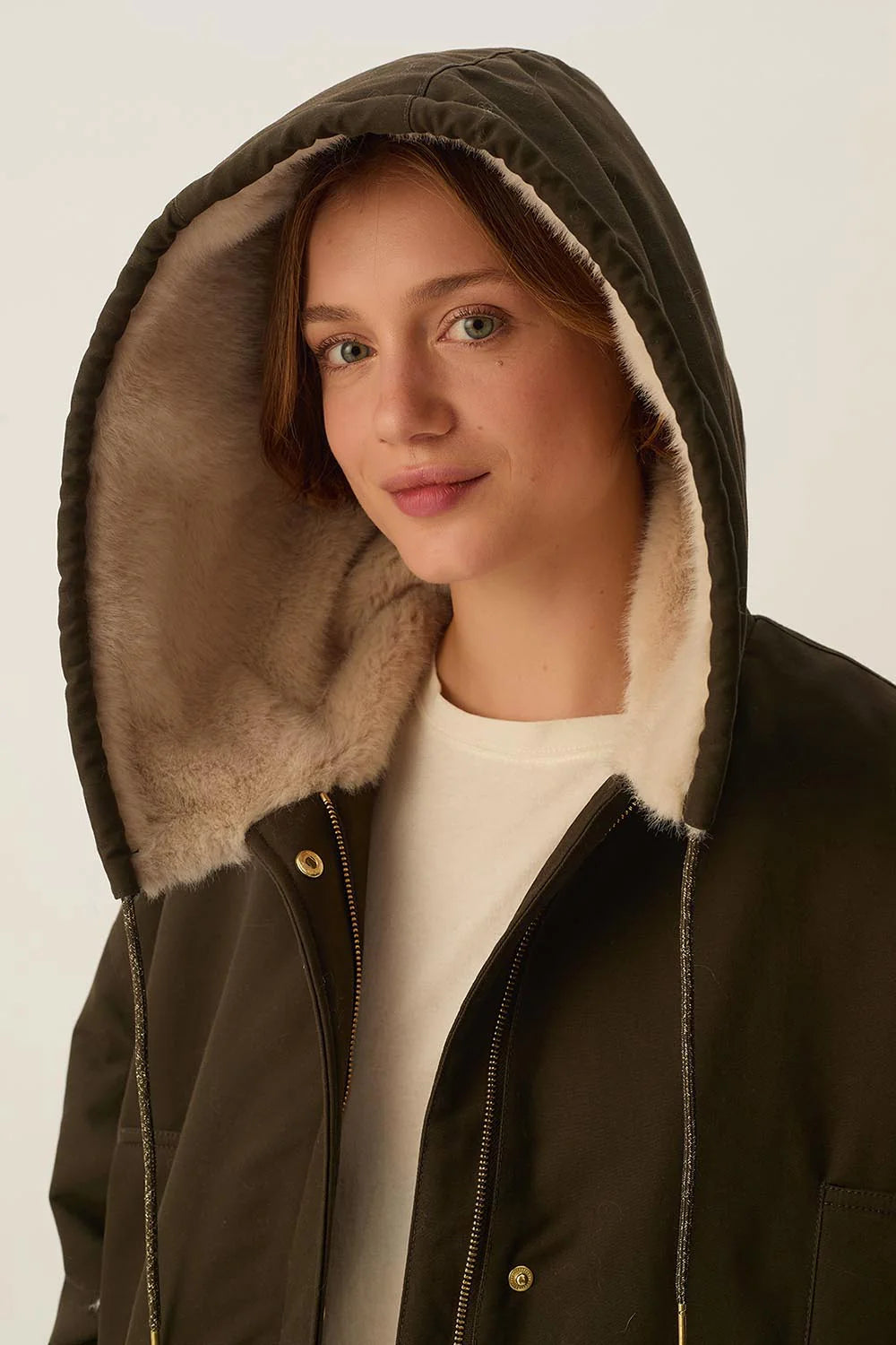 Parka Des Petits Hauts verde army interno pelliccia ecrù